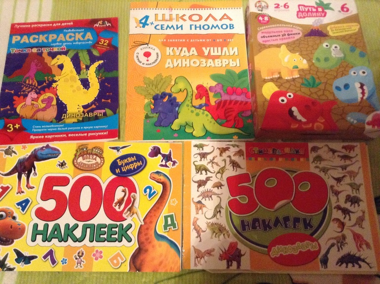 в 3 года после просмотра мультика поезд динозавров у Магомеда появилась сумасшедшая любовь к динозавром. Раскрашивал он только динозавров, Игрушек динозавров, собрался целый контейнер, несколько мягких игрушек динозавров, еще были большие которые ходили и рычали. Ну и конечно книги про динозавров и драконов были самые любимые в этом возрасте