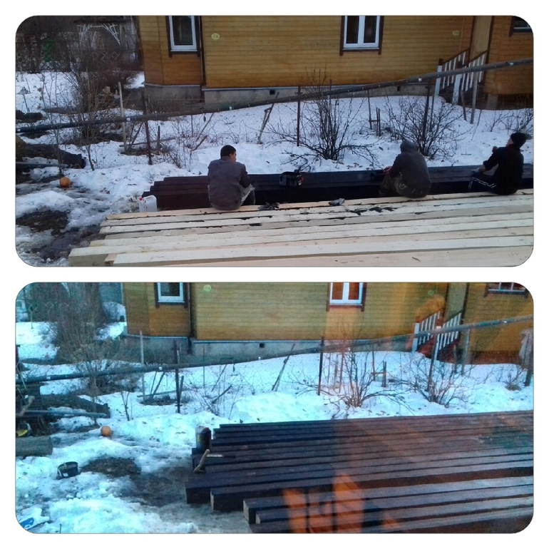 Дома у нас капитальный ремонт. На участке живут рабочие. Будут поднимать нам дом и менять фунтдамент . Колосальная работа. Надеюсь, недельки на две у нас получится сьехать с поля боя. А по ка наш участок выглядит вот так