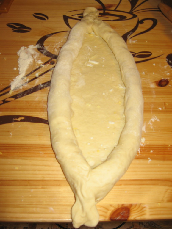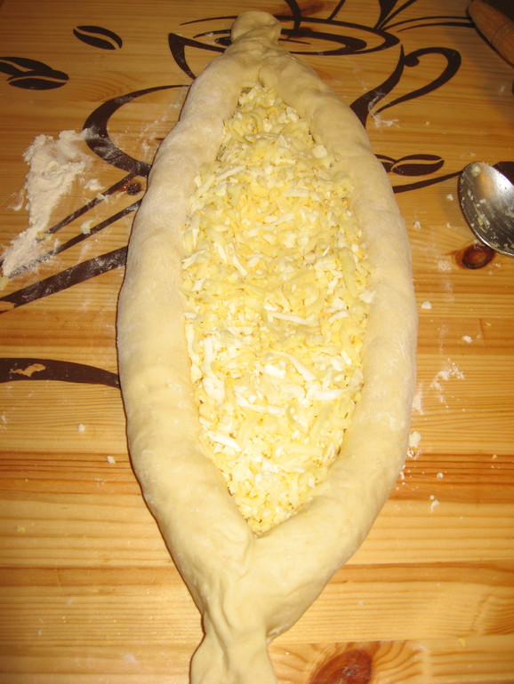Тесто можно разделить на 2,3,4 части , я делила на 2, получились большие лодочки)