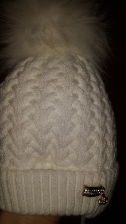 Шапочка белая 6-9 мес, помпон искусственный мех. Цена 300 руб. Бу.