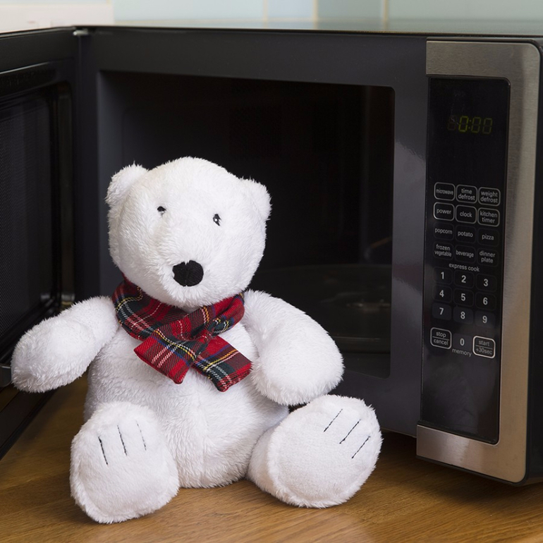- Положите игрушку на 1-2 минуты в микроволновую печь, и она будет греть вас на протяжении 3-4 часов.