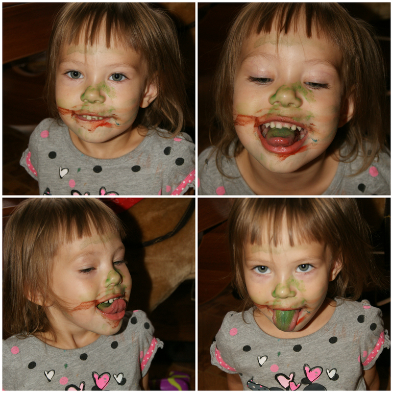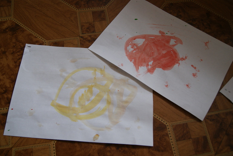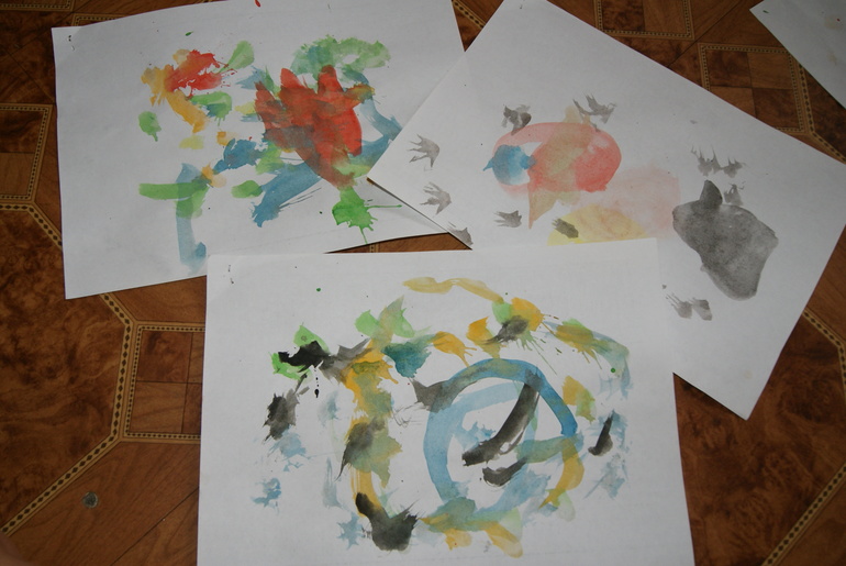 Тут уж виновата моя забывчивость и невнимательность, убрала все кроме красок )))) и ушла на кухню готовить, через минут 5-7 пришел ко мне, довольный собой, чертенок