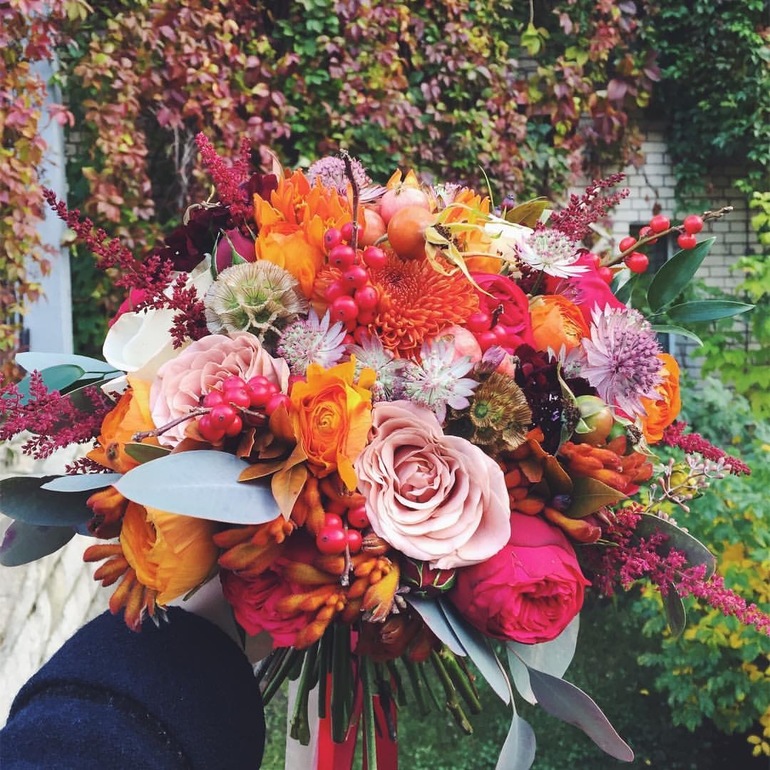 Ну поздравляю вас! Букет очень красивый и погода сегодня не подвела. И краски осени просто супер! Поэтому фото будут наверное супер.