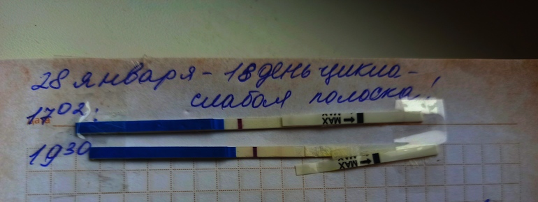 девочки подскажите пожалуйста, сделала тест на беременность 28 января,показал слабую полоску ,это все вечером было ..месячные были 11-го января,при это в прошлом цикле перед месячными,цикл был большой 36 дней,но потом 11-го пошли ...и что теперь думать ,беременна или нет .
