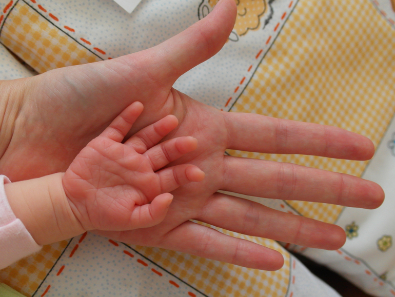 В общем, мы очень любим нашу лапочку-дочку! Если по-началу муж не реагировал на ребенка, то спустя неделю так проникся, что сейчас очень скучает по ней, ТТТ!!!!!!!!! Ну и фоточка нашей малехонькой ручки!
