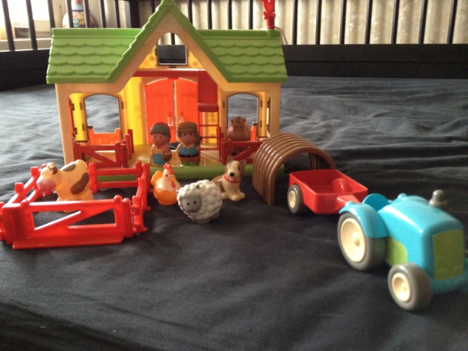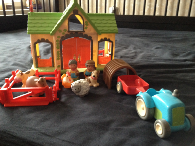 фермеры, стойло, хлев и загончик для животных, трактор и автоприцеп, животные. На крыше располагаются кнопочки, нажми на них вы услышите голоса животных. Эта игра позволит ребенку почувствовать себя маленьким фермером. У малыша появится много радостных хлопот, он будет ухаживать за домашними животными. Характеристики: материал: высококачественный, первичный пластик. Размер фермы: высота 32см., длина 25см.