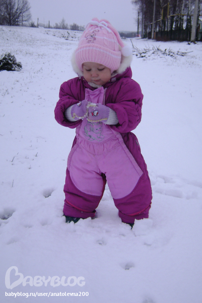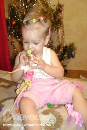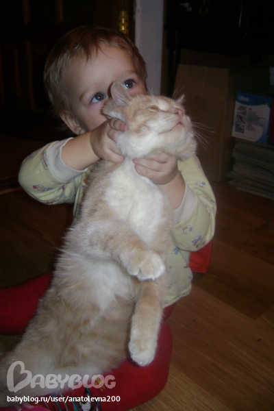 Наш рост около 90см (точно никто не скажет, не можем дочь нашу удержать), вес 12 кг. Стандартный набор слов:най-най-дай,ить- пить, мить- мыть,куп-куп-купаться,тись - киса, ко-ко (мама пошла к курочке за яйцами).Повторяет все слова, но по одному слогу, н-р: включит - чить, Барсик - ба и т.д. Иногда выдаёт непереводимыми предложениями, что-то доказывает-рассказывает. Сама неплохо ест, когда есть время - не помогаем. научилась открывать морозилку, знает что там есть мороженое, теперь держу для неё в стаканчиках, балую иногда. Ох, чувствую я, что с мальчишками попробует она раньше времени всякой каки. Уже умудрились ей дать попробовать лимонад и чупик, ну говорила я им, объясняла, предупреждала. Всё, теперь она мимо не проходит - всё прячу. Я и так противник всех этих гадостей, а чипсы-сухари - это вообще редкость великая (если "добренькие" гости принесут ). Ещё придумала дочка себе обязанность - завхоз над котовой кормушкой (не дай бог там что-то опустело - срочно надо далить-наполнить), была замечена, поедающей с ним на пару из его же чашки, ну и кот знает, где самое клёвое место в обед - у Дашиных ног под столом. Эти двое вообще друг-друга понимают каким-то неведомым всем остальным образом. Барс прощает Даше всё (ну, почти всё), успевает соскучится по ней до утра и выделывается-крутится перед ней, зазывая поиграть.