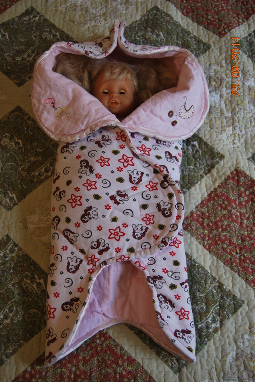 Болеет моя старшенькая, сидит дома, достала своих кукол, колясочку.... играет. Потом приходит и говорит: "Вот ты всем шьешь, а твоей дочери коляска без муфты!!! И руки очень мерзнут!" Стыдно стало жуть!!! А ведь и правда Муфт сшила вагон и тележка, а у дочери коляска без муфты... И так мне стало стыдно!!!! Что я села и сшила))) И все сразу нашлось. И плащевка под колясочку подходящая, и флис под эту плащевочку)) И главное время, которого всегда не хватает!!!