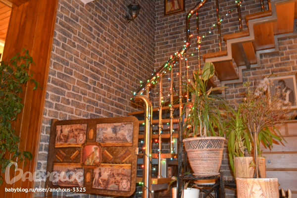 Очень красиво..и гирлянда,и елочка...да и лестнца просто супер)))))