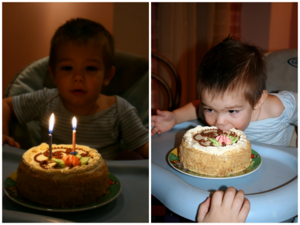 В итоге, Иван был в восторге )))! Сантеич, конечно, мало что понял, по-моему торт ему больше всех понравился. Свечки по "старинному" обычаю задували 6-7 раз - не меньше! )