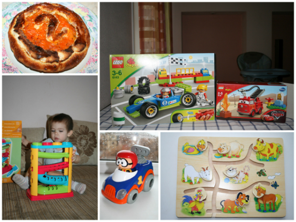 Плюс еще набор с пластилином "Юный скульптор", отличная подушка, машинки и собака, виляющая попой под музыкальную композицию на китайском языке.
