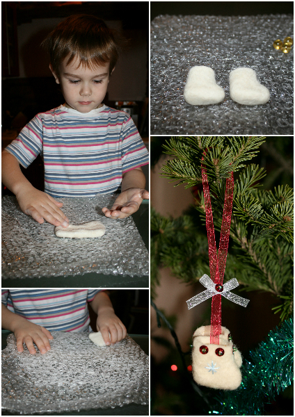 Помните валеночки красные показывала?их мы доделали и отдали в садик. А эти для себя валяли, но приехала бабушка, долго восхищалась и мы их ей с удовольствием задарили. Так что на следующий год ничего выдумывать не нужно, будем опять делать )!