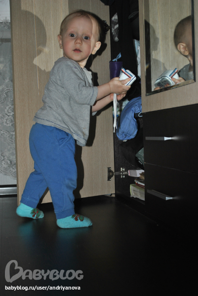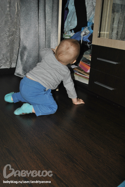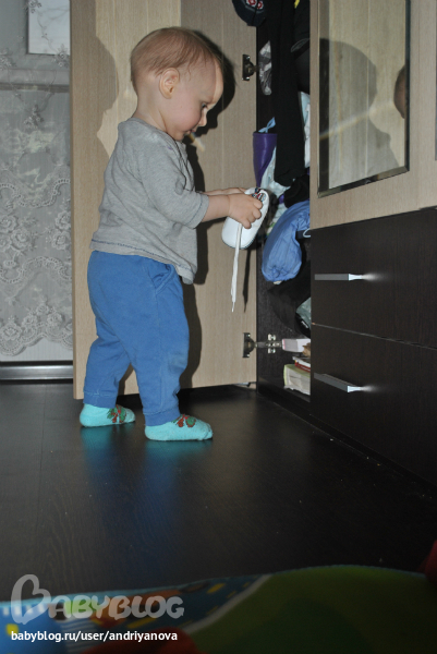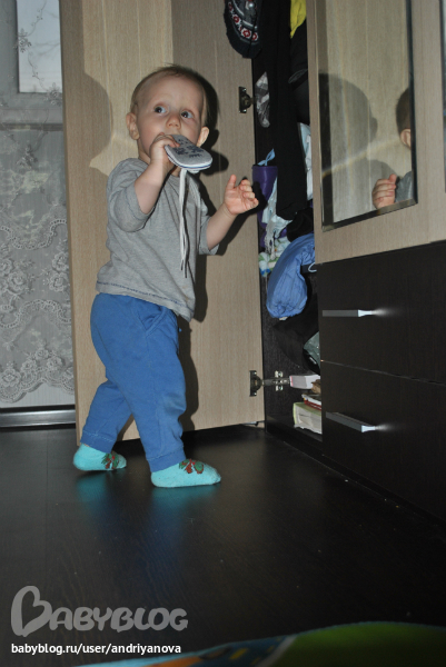не ходим пока, всё стоит только.все шкафы научился открывать-всё выбрасывает.
