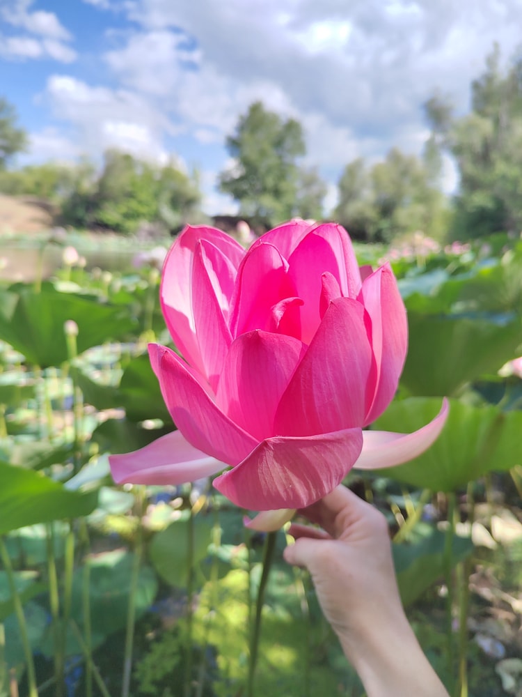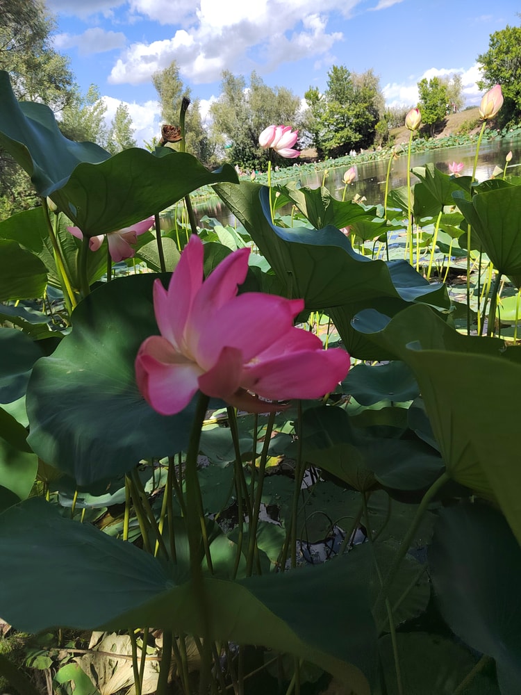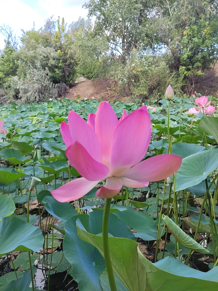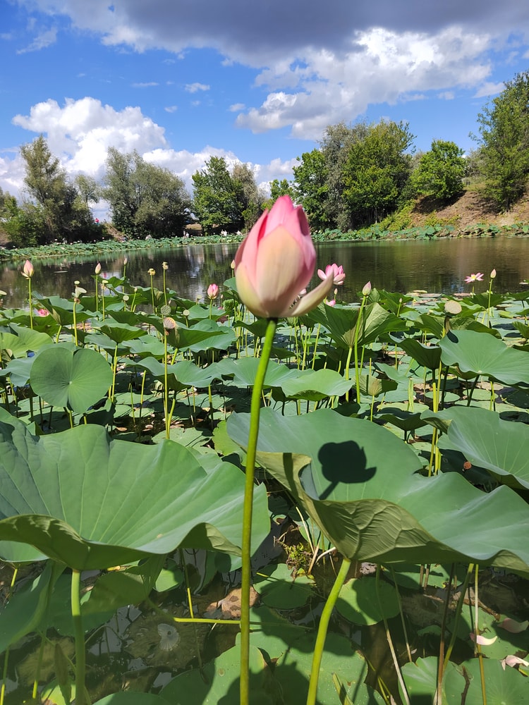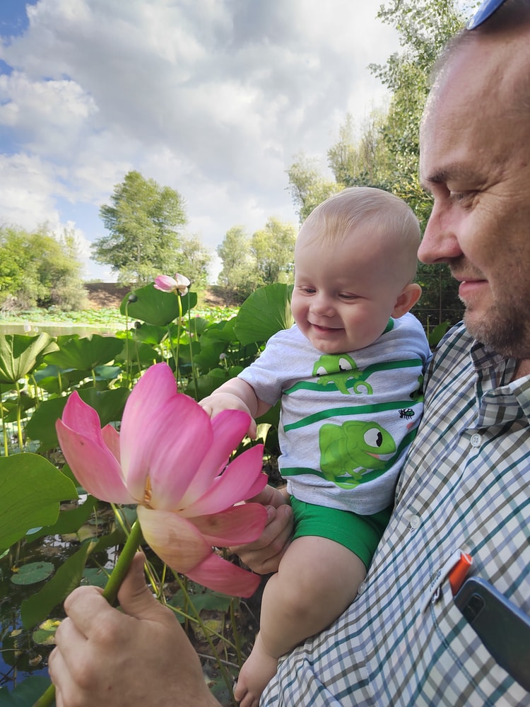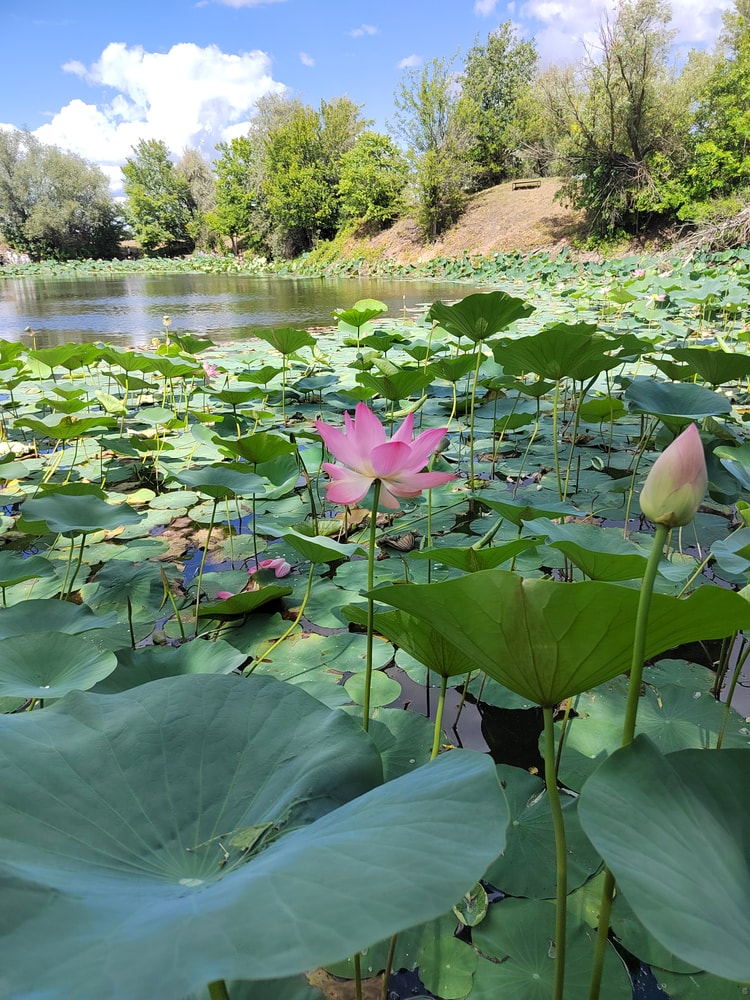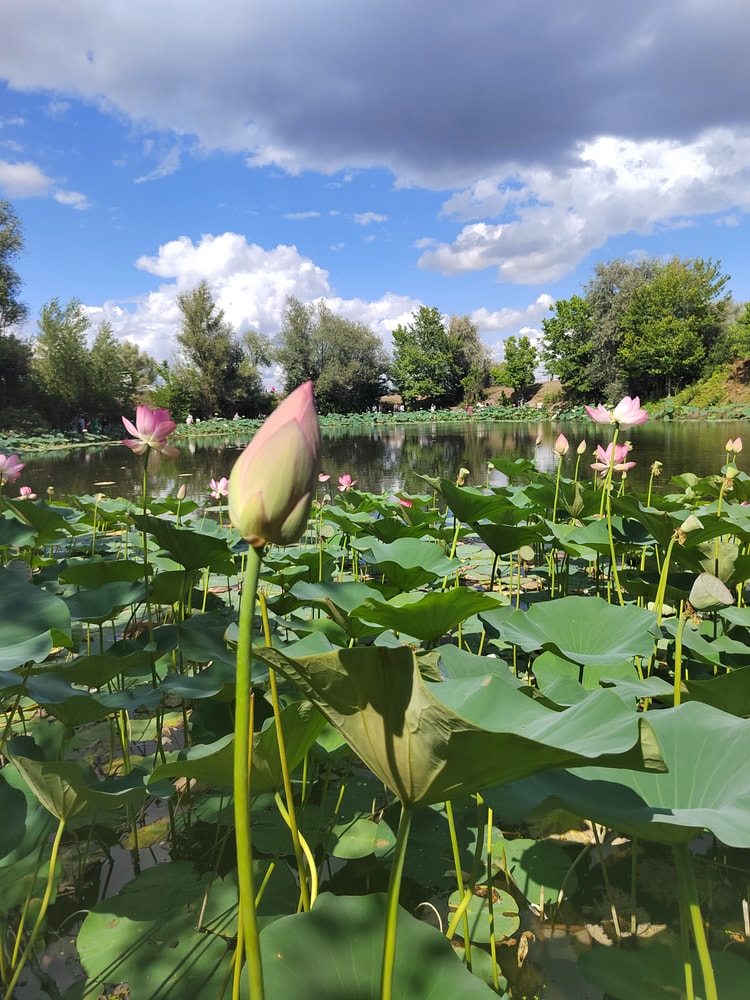 День был мрачный. Настроение еще хуже. Поехали по делам и на обратном пути муж предложил заехать на озеро лотосов. Времени как всегда не хватало, ведь надо было сегодня еще к логопеду с сыном успеть. Ну да я такая, что когда муж какую то прогулку предлагает, я никогда не отказываюсь.... Поехали. У озера много машин. Люди семьями приезжают с разных областей посмотреть на это чудо.... Озеро совсем небольшое, но какое диво на нем расцвело! Лотосы. Каждый год они все больше и больше закрывают небольшое пространство водной глади на маленьком озерке. Листья не такие большие как в пойме Волги, куда она впадает в Каспийское море. Но от этого бутоны не стали менее краше или мельче. И этот запах легкой мятной зубной пасты..... Китенок наш был рад в первый раз увидеть это цветение райских цветов. Удивительное зрелище! Приезжайте к нам в Волго-Ахтубинскую пойму посмотреть на лотосы.