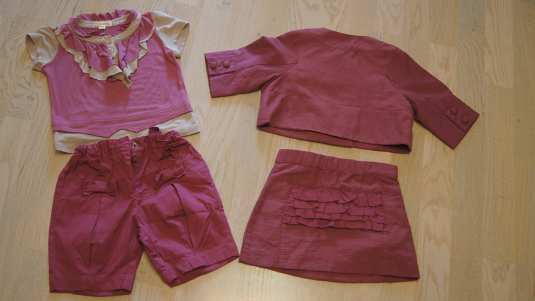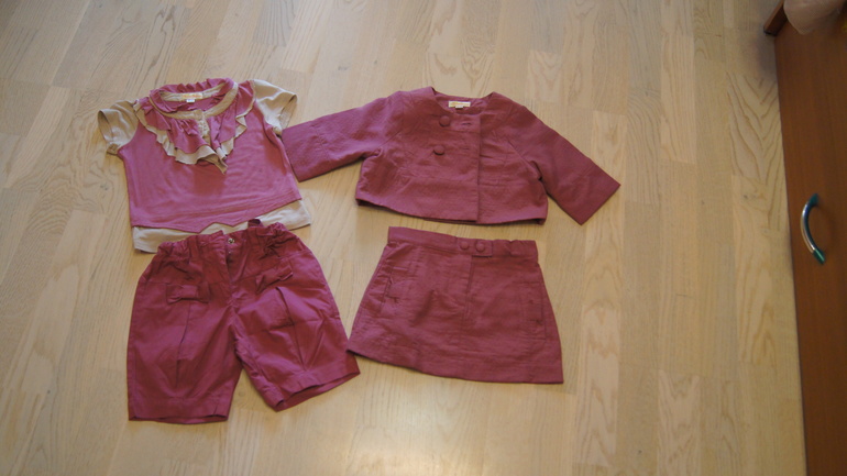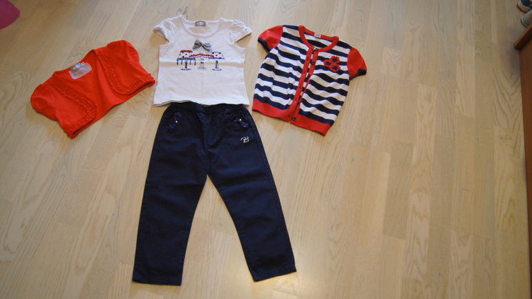 2. Болеро, футболка, брюки Барилотто на 96, кофта Вайкики 92-98. За все 1000 руб.