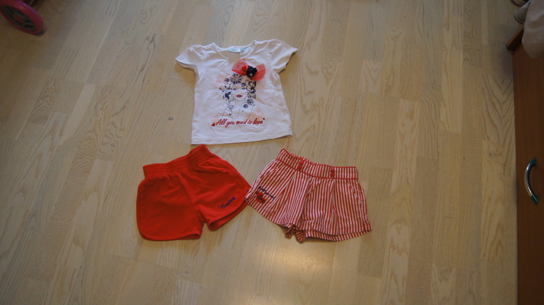 1. Комплект Войчик на 98, шорты на 92, но они большемерят. В идеале. Цена 1500 руб.