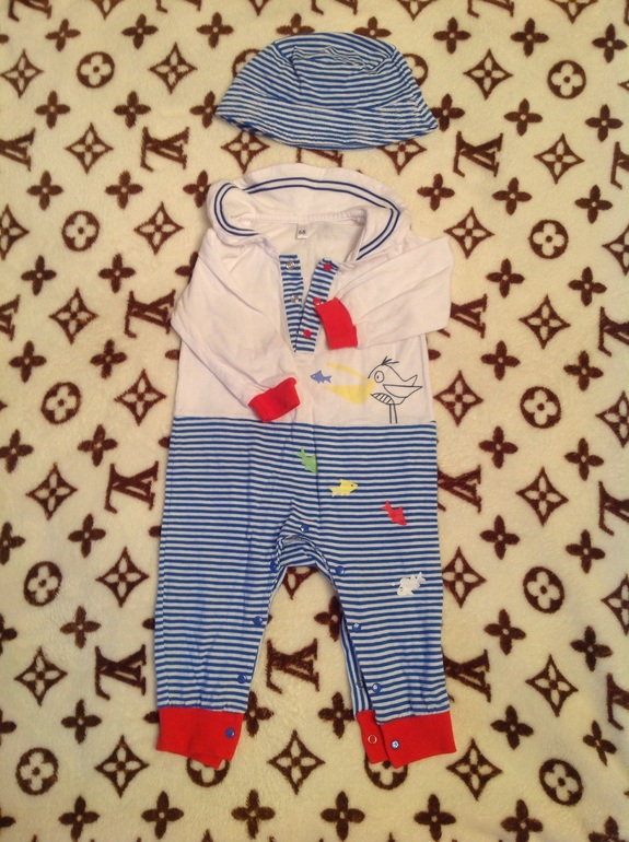 На футболках идет маркировка 6-9 мес. (68-74 см) , песочник на 68, футболка и шорты тоже где-то на 6 мес ( 68-74), и комбезик также, его даже можно потом как шорты носить ( лямки регулируются). Находимся мы на Братиславской