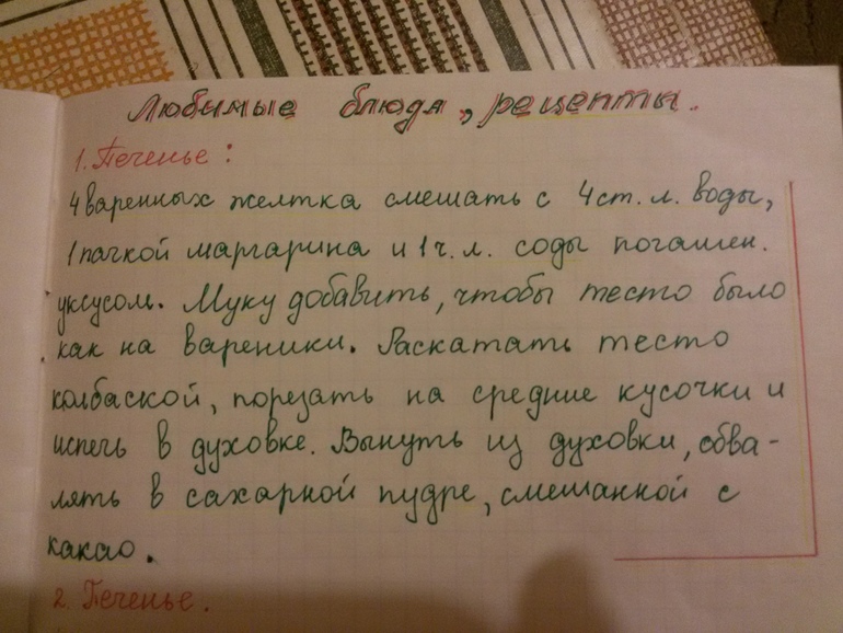 Переписывались мы тут с сестрами - трепались ни о чем. Вспомнили об одном рецепте, который был у нас в фаворе какое-то время в детстве. Рецепт этот - печенья, его утп, так сказать))) в том, что один из ингредиентов - ВАРЕНЫЕ желтки! Сокрушались насчет рецепта, где б его найти. И тут пришло мне на ум, что летом я забирала из деревни свои тетрадки, в которых записи какие-то, с тех юных лет. Решила я заглянуть туда на всякий случай... и - все нашлось)))