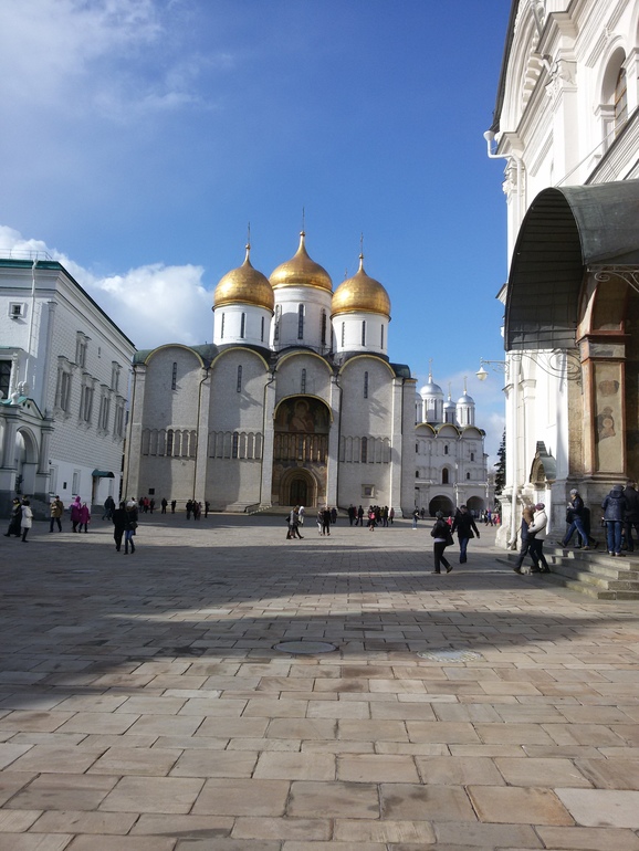 Вчера мы были в Кремле. Долго думали ,куда съездить, а потом вдруг выяснилось .что наш папа не видел Царь-Пушку и Царь-Колокол. Ну и поехали мы...в центр. Несмотря на странную погоду, когда то светит солнце, то вдруг метет снег, погуляли отлично. Зашли в Благовещенский и Архангельский Соборы, а потом заглянули на выставку "Клады Московского Кремля". Были удивлены тяжестью древних женских украшений. Я так понимаю ,в полном обмундировании (украшенная серебром шапка, подвески до плеч тоже из серебра и еще браслеты на руки) это вам не в бирюльки играть. Такую тяжесть еще уметь носить надо! И еще поразили нас деньги. Серебряные монетки такие мелкие, как их не потерять даже не знаю. Отсюда наверное, выражение горсть серебра))) И еще удивились серебряным палочкам разной длины(самые большие см 30). Это тоже деньги, черниговские гривны. Я так полагаю, обладатель этой "палочки" (даже самой короткой см 8 в длину и около 1,5 см в ширину) был прилично богат))) В общем интересно!
