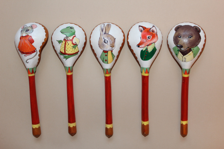Поступил заказ из детского садика, нужны ложки для того, чтобы дети могли сказки рассказывать. Вот я и расстаралась.