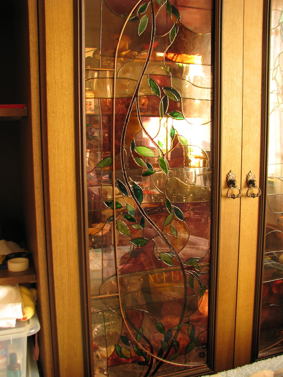 Как то все совпало, покупка витражных красок и старая надоевшая мебельная стенка, да, и еще мое хорошее настроение.