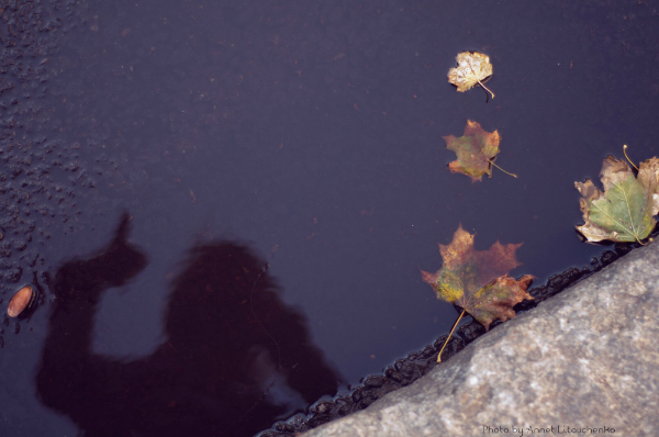 Прочитав вчера вечером "задание" на сегодня и увидев с утра тучи на небе, подумала, вот буду в центре и сфотографирую отражение в луже с листиками. Пока добралась то да се, выглянуло солнышко и луж осталось не так много, но я её нашла:)