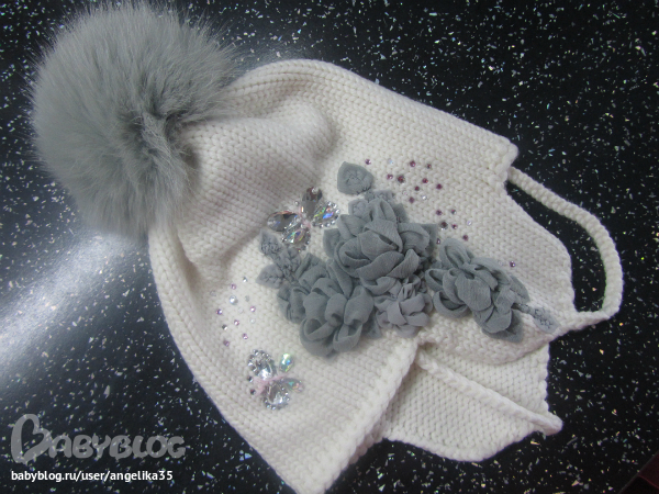 8) Шапочка в единственном экземпляре, брала своей дочке, но комплект к которому ее покупала, выросли из него, продала. Неимоверно красивая! Кристаллы красивее, чем у всех Реджин вместе взятых!!! Размер 44-50. На ОГ 50-51 сидит отлично.