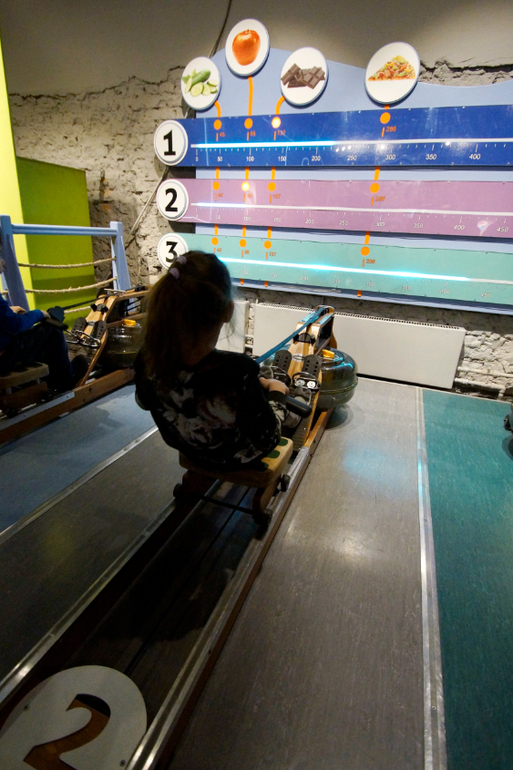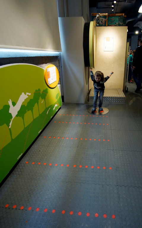 При входе зона "Измерь себя" можно измерить рост, вес, длину прыжка, силу, кол-во воды в организме, силу голоса (моя орала как гиппопотам, как не сорвала голос удивительно!). Выносливость - кол-во секунд на турнике - у моей получилось 25 (!!!). Разумеется везде висят таблички об экспонатах, но рассчитанные на более старших, малыши или не слушают или им тяжело воспринимать инфу, был бы адаптивный вариант было б здорово.