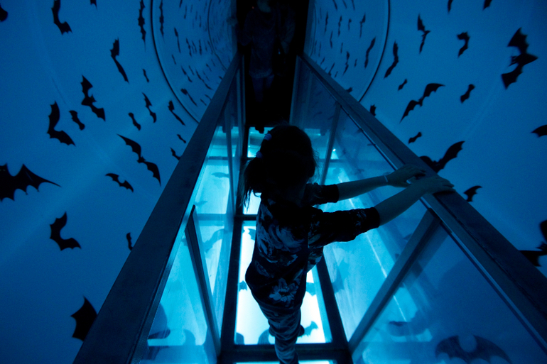 Восприятие Это самое крутое, пройти по канату над городом, побывать во вращающийся комнате (крутятся стены, а меня прям мутило и руки не могла от перил оторвать. Страшная комната - вот мать дура тоже - темная темная комната с зеркалом, а в нем мелькает страшный клоун - думаю все энурез и кошмары нам обеспечено, но пронесло. Больше б не пошла. Очень здорово это темная комната со стенами различной фактуры надо угадать, что где на ощупь. Восторгу было не передать. И многое другое - там реально очень много всего по экспедиции ходили более 3-х часов..