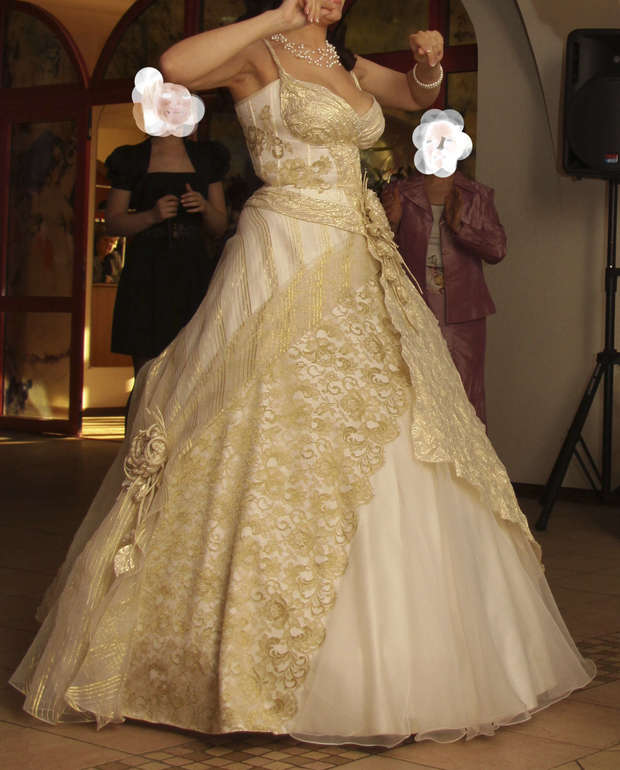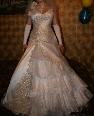 Неделю назад я пришла домой и увидела замоченное в ванне золотистой свадебное платье. Я спросила у мамы, зачем и кому купила. На это она ответила, что купила себе и хочет в свои 34 года побыть невестой, пусть даже и без свадьбы. А золотистое свадебное платье маме очень понравилось.
