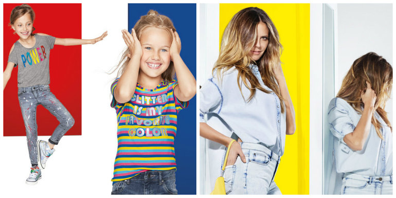 Ирина, привет! Нам детское на 134-140 (платье и футболка), женские джинсы 44 (максимально большие), ночная рубашка на XL (максимально большая)))