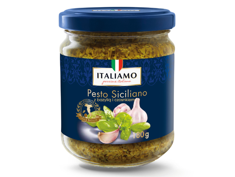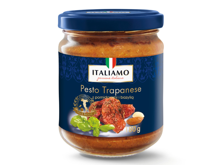 Вы можете выбрать: базилик-соусом с добавлением чеснока или томатного соуса с базиликом, высушенными на солнце томатами и миндалем.