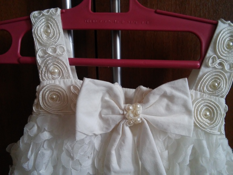 Одели 1 раз на праздник. Верх платья украшен розочками.