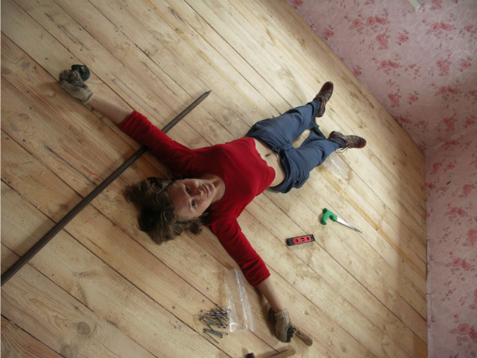 И вот когда пол был уже готов, мы с мужем, еле живые от усталости, улеглись прямо на него, и так нам было хорошо, как бывает только от большой-большой удовлетворенности проделанным физическим трудом...