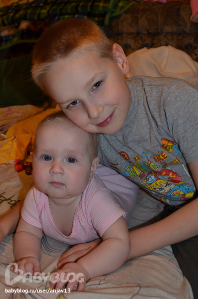 Спасибо! Мои мальчишки Маруську очень любят, хотя сейчас она их достает сильно. Стала вставать везде. таскает их за волосы, кусается, щипается...в общем, все прелести жизни