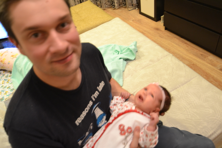 С первой датой малышку и родителей!!! Пусть растет здоровой и веселой умничкой на радость маме с папой!Как вы, приладились, привыкли к новому режиму?:)