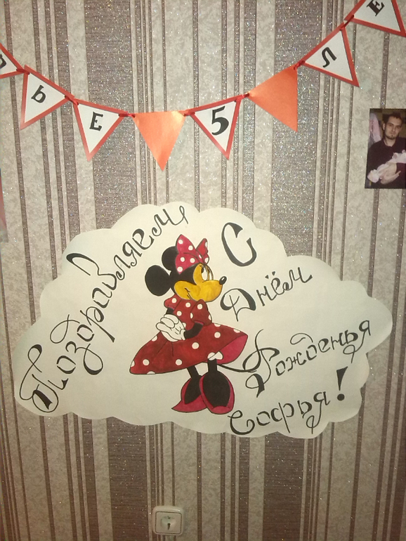 плакат папа ривовал...он у нас художник...жаль не учился....в худ.школе......и кстати фрукты он тоже нарезал...смотрите