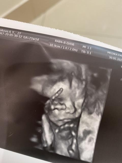 Второй скринингВсё-таки сходила ещё раз на второй скрининг - на этот раз платно и в 4D. Малышка благополучно проспала весь приём и игнорировала попытки врача её расшевелить 🙂