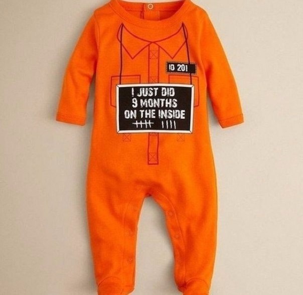 Комбинезон для новорожденных. Надпись: "Я отсидел внутри 9 месяцев"