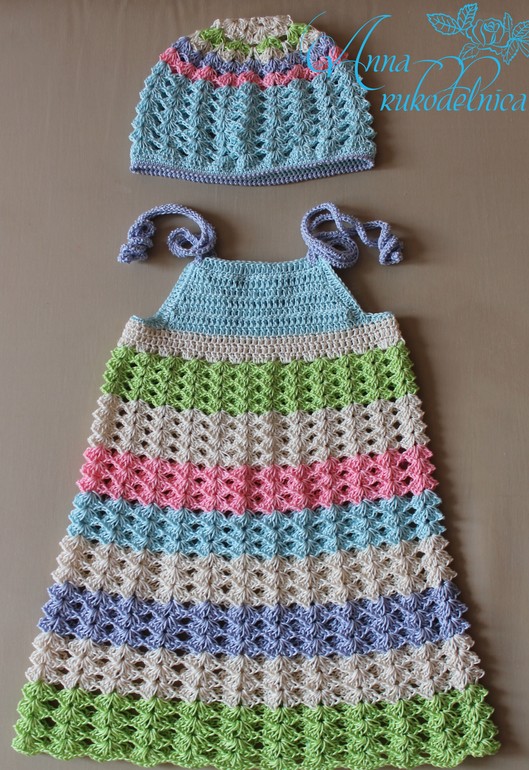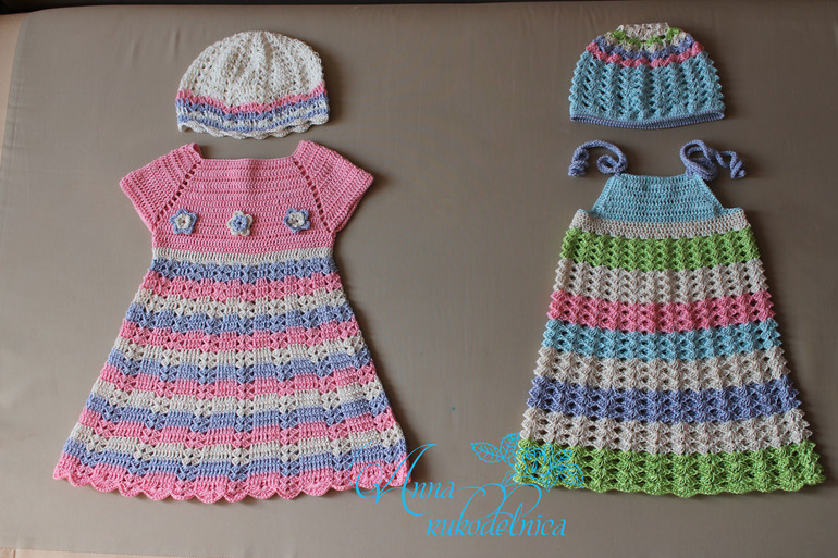 Решила победить запасы Бегонии и сделать несколько похожих вещичек. К розовому платью связала панаму, платье купили, панама осталась... Голубой комплект на примерке. С цветочками одну купили,одна осталась. В общем, идея мне понравилась, так интересно они вместе смотрятся. Надо попробовать реализовать все в большем масштабе=)