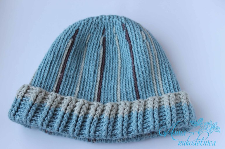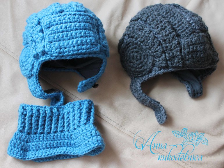 Из пряжи пима-хлопок 60%,беби-альпака 40%. С отворотом старшему, шлемиком - младшему. Тепленькие,всю осень отходили.