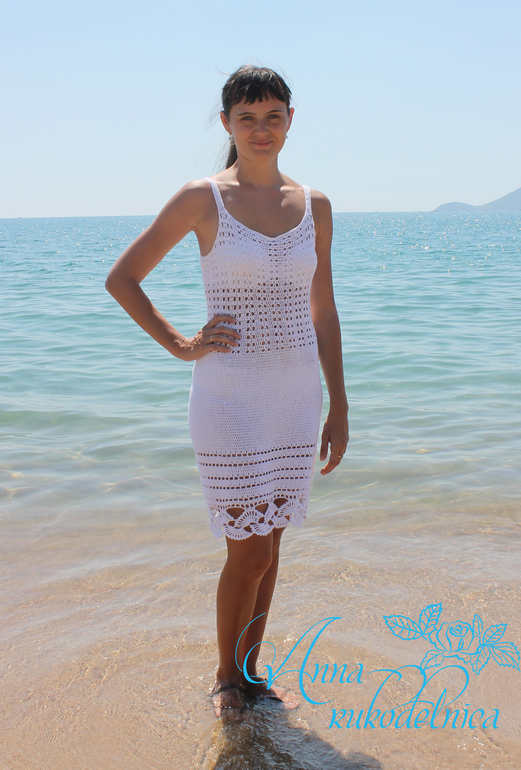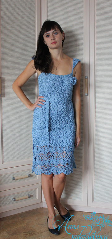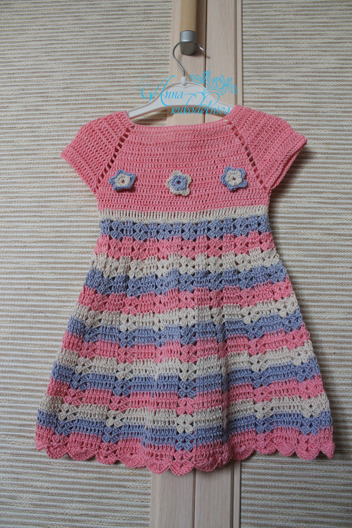 Пряжа Novelty (Vita Cotton) , крючок № 2,2. Верх взяла из этого описания Сарафан из квадратных мотивов , низ отсюда золотистое платье