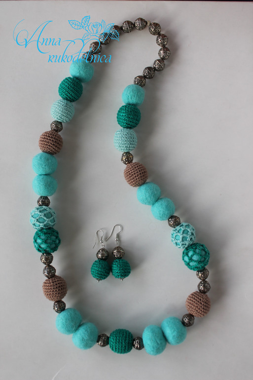 Валяные, обвязанные,можжевеловые и пластиковые бусины,фурнитура.