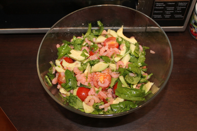 Я,вообще, очень люблю морепродукты, но дома не готовлю их, практически. В период токсикоза пару недель только и продержалась на кальмарах. Сашка один раз даже спецом ездил в Москву в ресторан за ними...) А этот нехитрый салатик можно сделать и дома, в Карусели нашлась и рукола, и авокадо=)