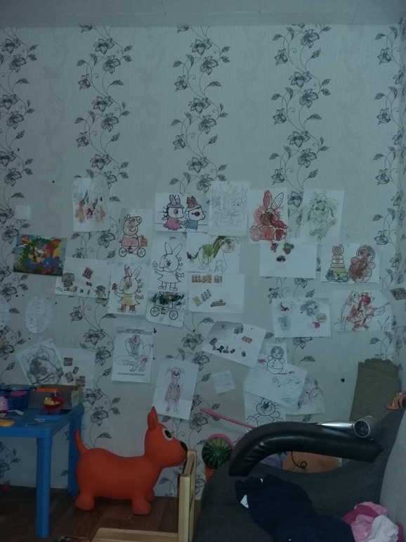 это в комнате на стене (дома раскрашивает раскраси печатаю ей)