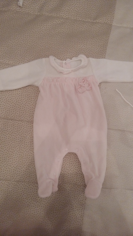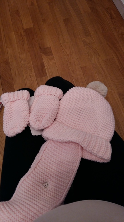Ну и малышке на выписку взяла комбез на тонком велюре с нереальной розочкой и комплект шапки с варежками на раннюю весну))):