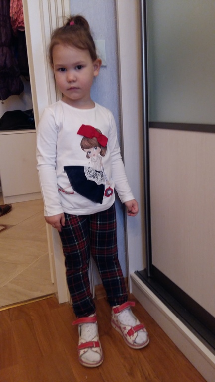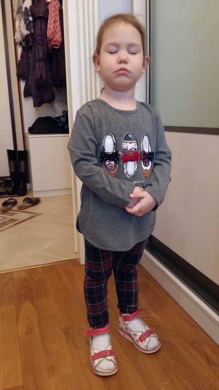 А вот кофта из комплекта - безнадежно ВЕЛИКА. Ждет весны. Но эти бантики на туфлях надо фотографировать не телефоном, а фотоаппаратом (причем хорошим), чтобы передать всю красоту. Тася решила сфотографироваться с закрытыми глазами:)))))