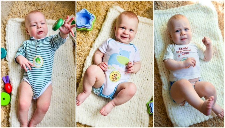 Ползает по пластунски, пытаетя садится, с 5 месяцев ввели прикорм.