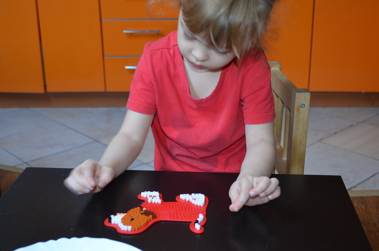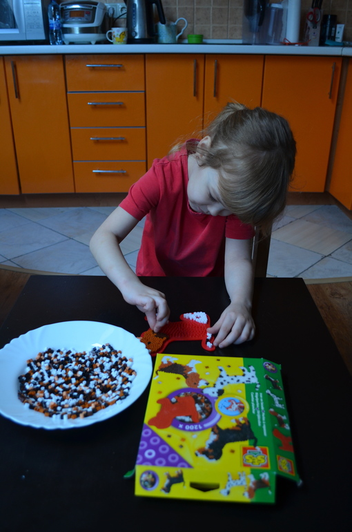 Ооо, мой тоже любит термомозаику, только у нас немного другая — основа круглая, а картинки, которые можно сделать, нарисованы на коробке. Правда сын просто нанизывает мозаику на основу без сюжета, но мелкая моторика все равно развивается и цветовое восприятие тоже))))