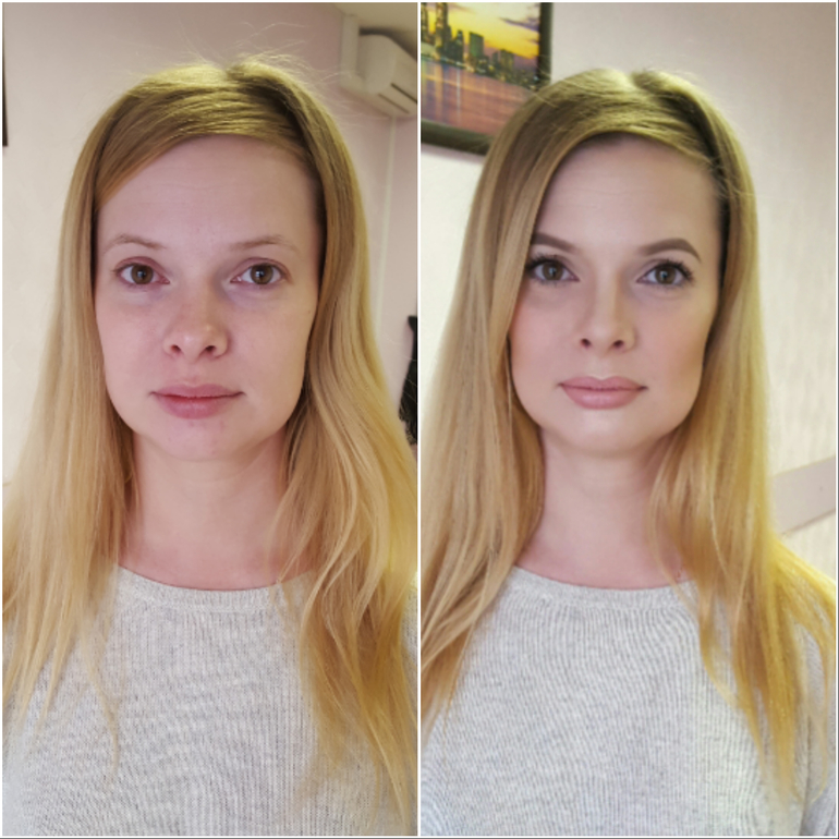 Нюд получился очень красиво! А вот с первой девушкой что-то не то... Ей понравилось? Она стала похожа на своего мастера, т.е. на Вас, Аня, с таким макияжем)